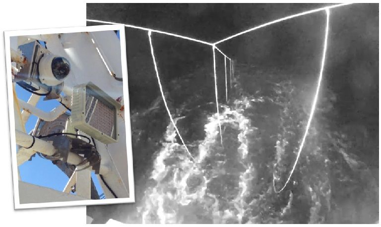 Each EM system included a control center, user interface, a pair of rotation sensors (one to detect gear setting and the other to detect hauling), a GPS receiver, a satellite modem, and two cameras (one to capture setting and the other to capture hauling). To comply with the CCAMLR requirement to minimize external illumination, infrared (IR) cameras were a necessity.